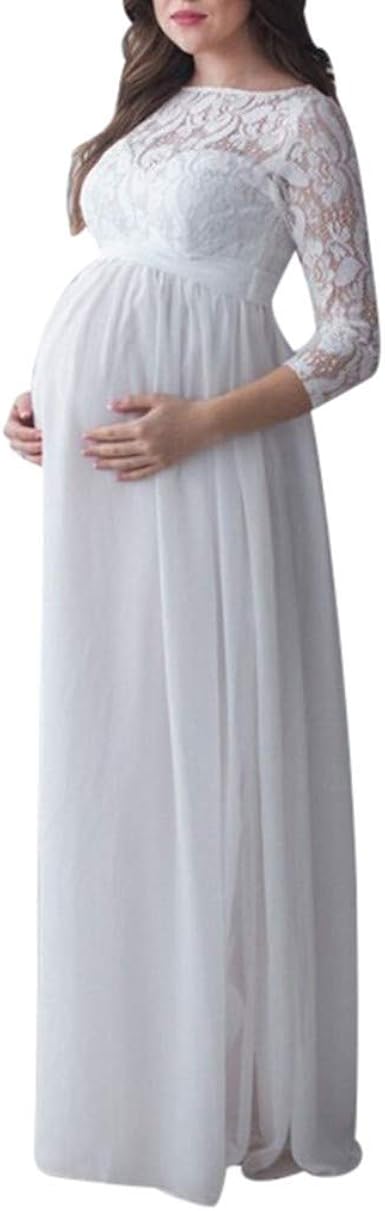 Amazon Com Vestido De Maternidad De Manga Larga Para Mujer Vestido De Encaje Suelto Para Embarazo Accesorios De Fotografia Vestido Largo Para Baby Shower Clothing