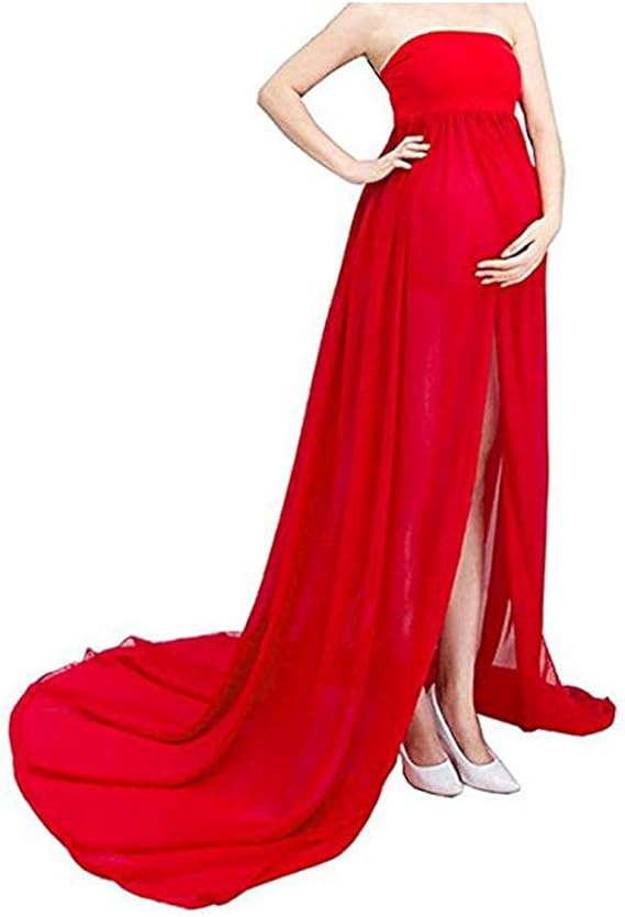 Hetadr Vestidos De Maternidad Para Baby Shower Fotografia Ropa De Maternidad Mujer Vestidos Largos Gasa Split Vista Delantera Foto 2 Rojo Amazon Com Mx Ropa Zapatos Y Accesorios