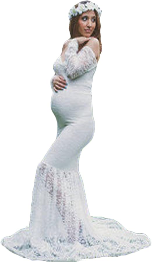 La Peachess Mujeres Embarazadas Largo Maxi De Sirena Vestido De Off Hombro Sesion De Fotos Maternidad Cuello En V Vestido De Encaje Baby Shower Blanco M Amazon Com Mx Ropa Zapatos Y Accesorios
