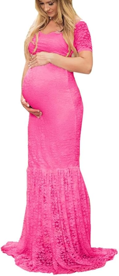 Amazon Com Vestido Largo De Sirena Para Mujer Embarazada Con Hombros Descubiertos Para Sesion De Fotos Para Maternidad Cuello En V Vestido De Encaje Para Baby Shower Clothing