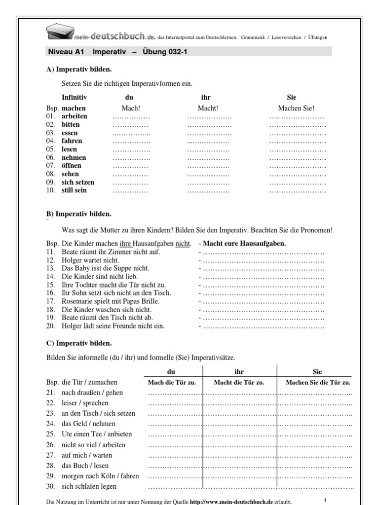 Grammatikubungen Zum Imperativ In 2020 Grammatik Ubungen Grammatik Text Auf Deutsch
