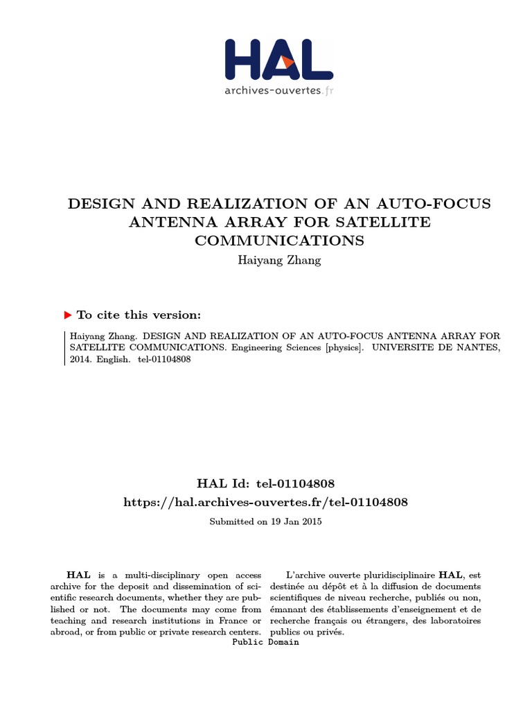These De Doctorat Haiyang Zhang Conception Et Realisation D Un Reseau D Antennes A Pointage Electronique Pour Les Communications Par Satellite Pdf Free Download
