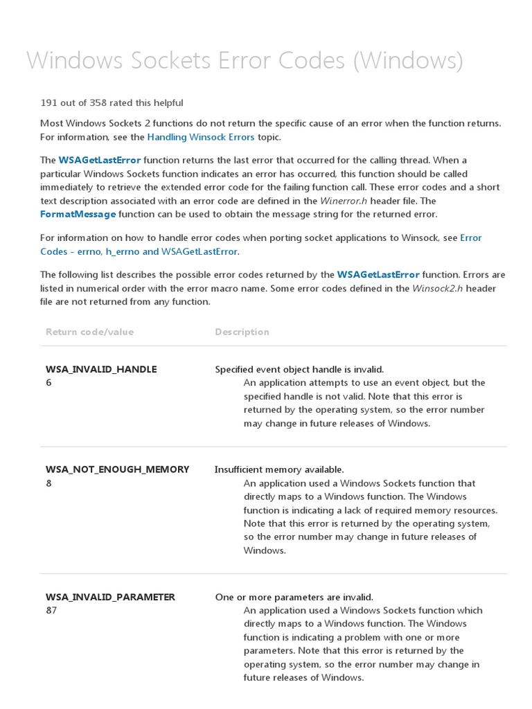 Windows Sockets Error Codes Windows Network Socket Port Computer Networking