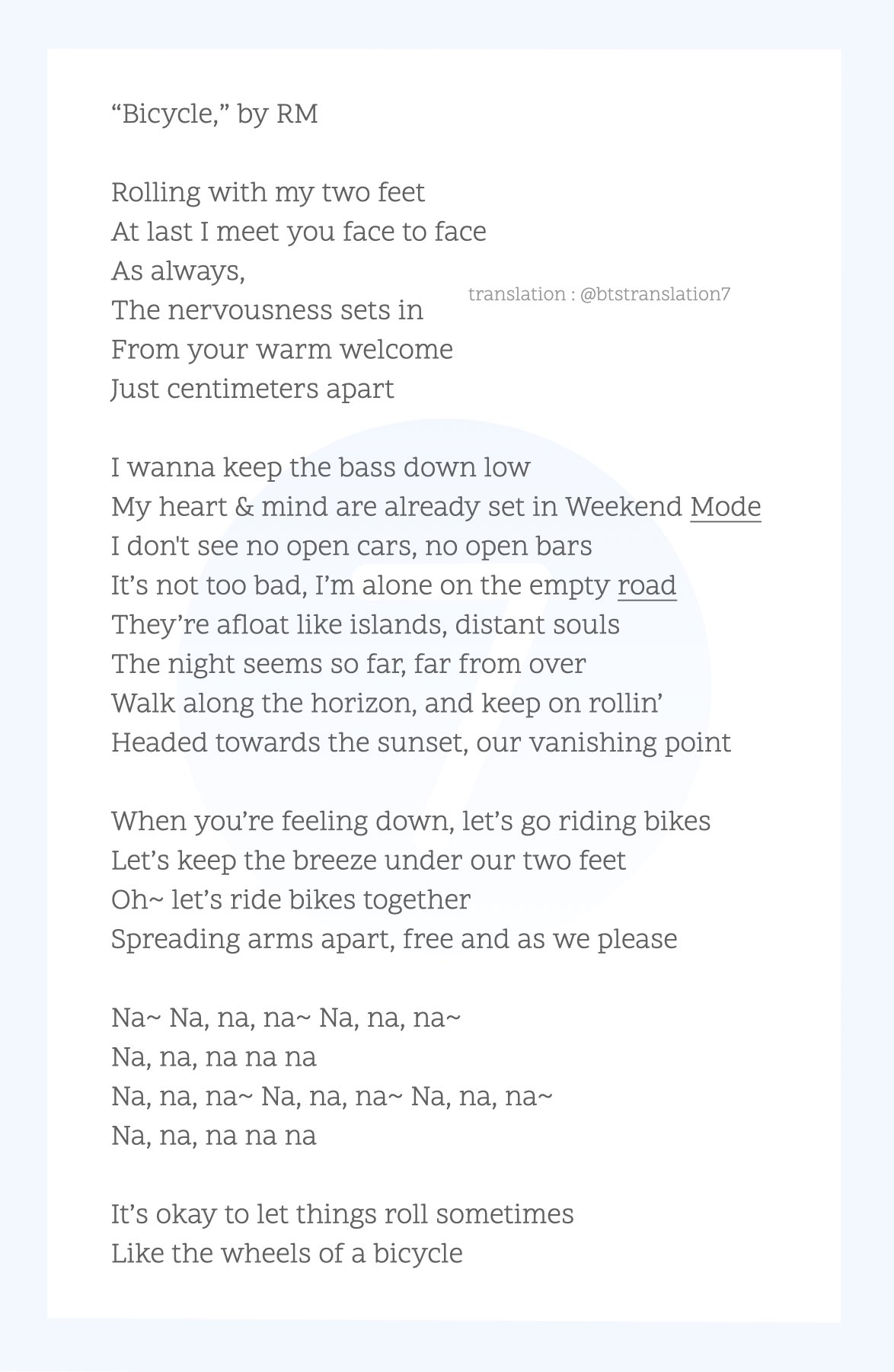 스튜디오 On Twitter Bicycle By Rm English Lyrics Translation Here Is My Translation And Interpretation Of Namjoon S Beautiful Lyrics Make Sure To Check Out Other Translators Posts Too As Always